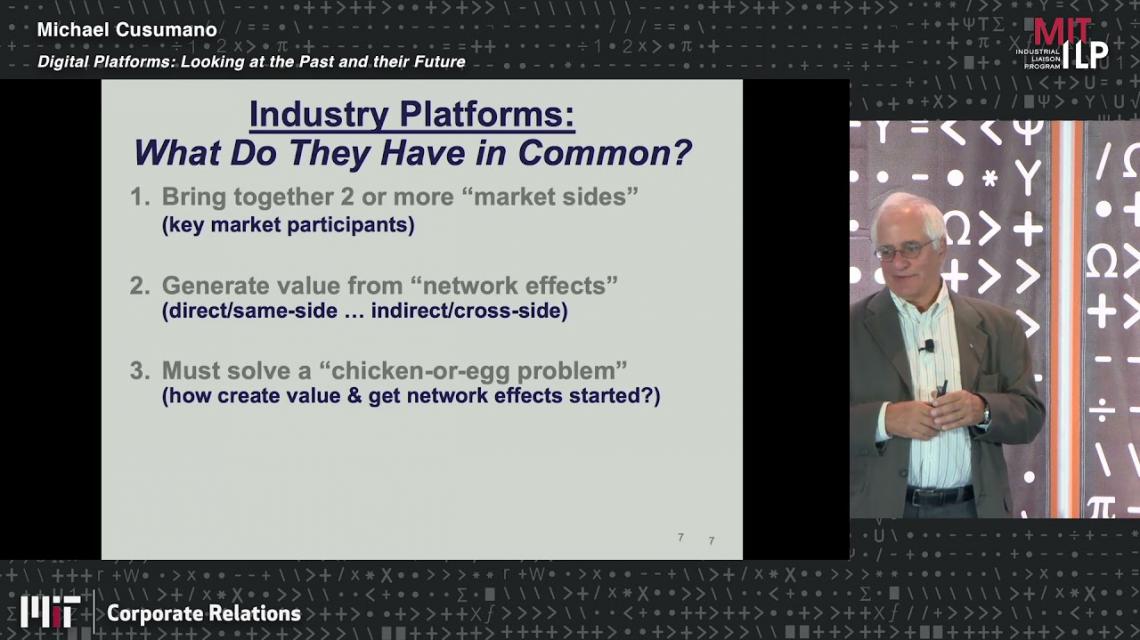 This talk will review and extend key findings from a recent book, The Business of Platforms: Strategy in the Age of Digital Competition, Innovation, and Power (Harper Business, 2019) by Michael A. Cusumano, Annabelle Gawer, and David B. Yoffie. Digital platforms are businesses that connect two or more market actors, with supply or demand driven at least in part by network effects. They are at the core of the most valuable technology companies in the world. The talk will explain how these digital platforms differ from conventional product or service businesses, how they differ among themselves, and why some markets produce spectacular winner-take-all-or-most outcomes while others result in financial losses. We will also consider emerging platforms powered by new enabling technologies such as artificial intelligence and machine learning, gene editing, and quantum computing.